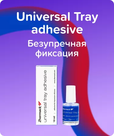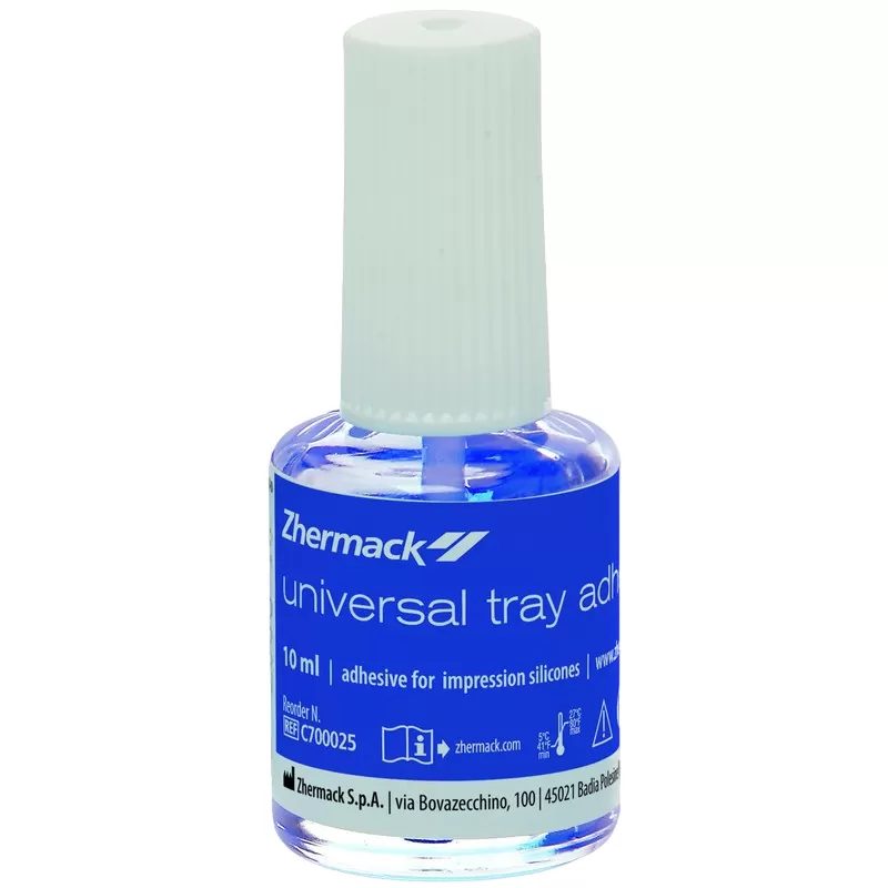 Адгезив для А- и С-Силиконов Universal Tray adhesive от Zhermack - это адгезивное средство, специально разработанное для оттискных материалов на основе А-силикона. Он обеспечивает прекрасное сцепление силиконовых масс с поверхностью оттискных ложек из металла, наносясь тончайшим слоем без создания уплотнений. Для удобства визуального контроля нанесения средство окрашено в синий цвет.