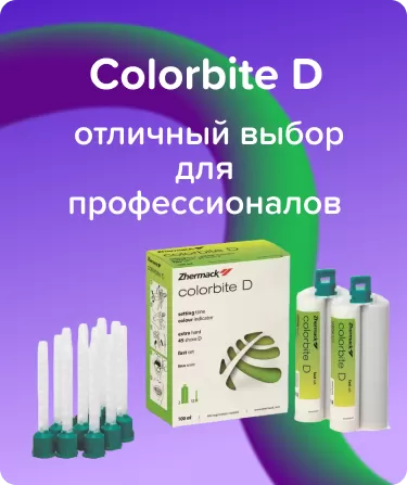 Colorbite D для регистрации прикуса от Zhermack - это идеальное решение для регистрации прикуса пациента и использования в стоматологических процедурах. Этот высококачественный материал отличается высокой точностью и плотностью оттисков, что гарантирует идеальное соответствие структур зубов при изготовлении капп и коронок. Удобные флаконы по 50 мл делают использование и хранение продукта максимально простыми. Colorbite D для регистрации прикуса легко наносится на зубы пациента и быстро застывает, обеспечивая быструю и эффективную регистрацию прикуса. Благодаря надежности и отличному качеству этого материала, стоматологи могут быть уверены в точности и долговечности получаемых результатов.