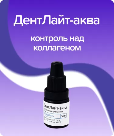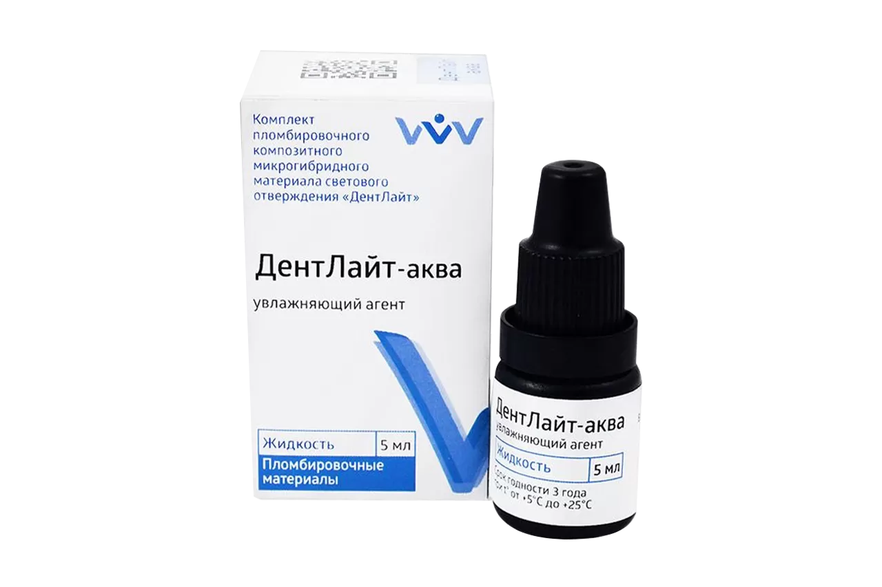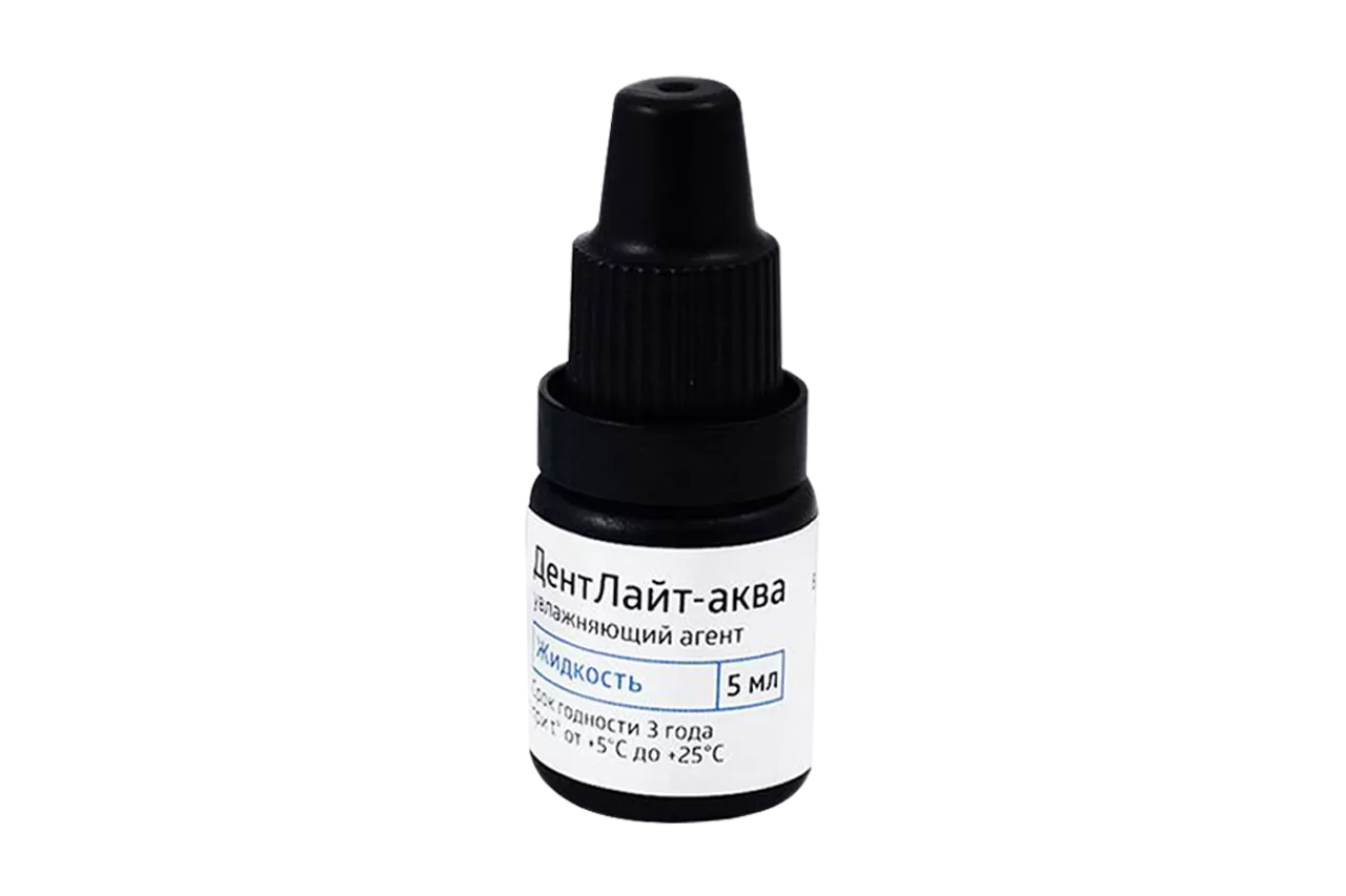 ДентЛайт Аква увлажняющий агент от производителя ВладМиВа - это водный раствор гидроксиэтилметакрилата (НЕМА), обогащенный фторирующими добавками и антисептиком (бензалкония хлорид). Этот продукт специально разработан для поддержания поверхности дентина увлажненной, что препятствует спаданию коллагеновых волокон и улучшает их проницаемость для гидрофильных адгезивных смол. Применение состава способствует эффективному смачиванию поверхности дентина и создаёт зону подавления кариеса в прилегающих тканях зуба.