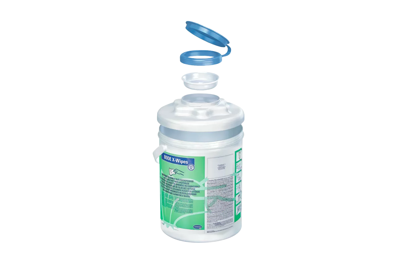 Paul Hartmann BODE X-Wipes от бренда BODE Chemie - многоразовый диспенсер для салфеток, изготовленный из прочного полипропилена, предназначен для размещения до 90 или 40 салфеток. Диспенсер оснащен цветной откидывающейся крышкой и подвижной ручкой для удобного использования и мобильности.