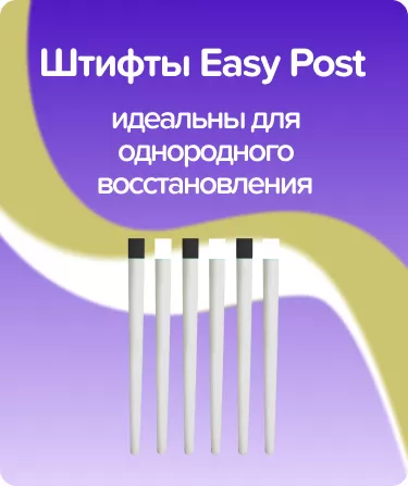 Easy Post набор D1.3 от Dentsply Sirona – это инновационные штифты, созданные на основе сложной комбинации эпоксидной смолы и усиленных кремниевыми волокнами, обогащёнными цирконом. Благодаря своему модулю упругости и прочности на сдвиг, близким к показателям натурального дентина, штифты Изи Пост идеально подходят для однородного восстановления зубов, обеспечивая высокий уровень надёжности и снижая риск перелома корня.