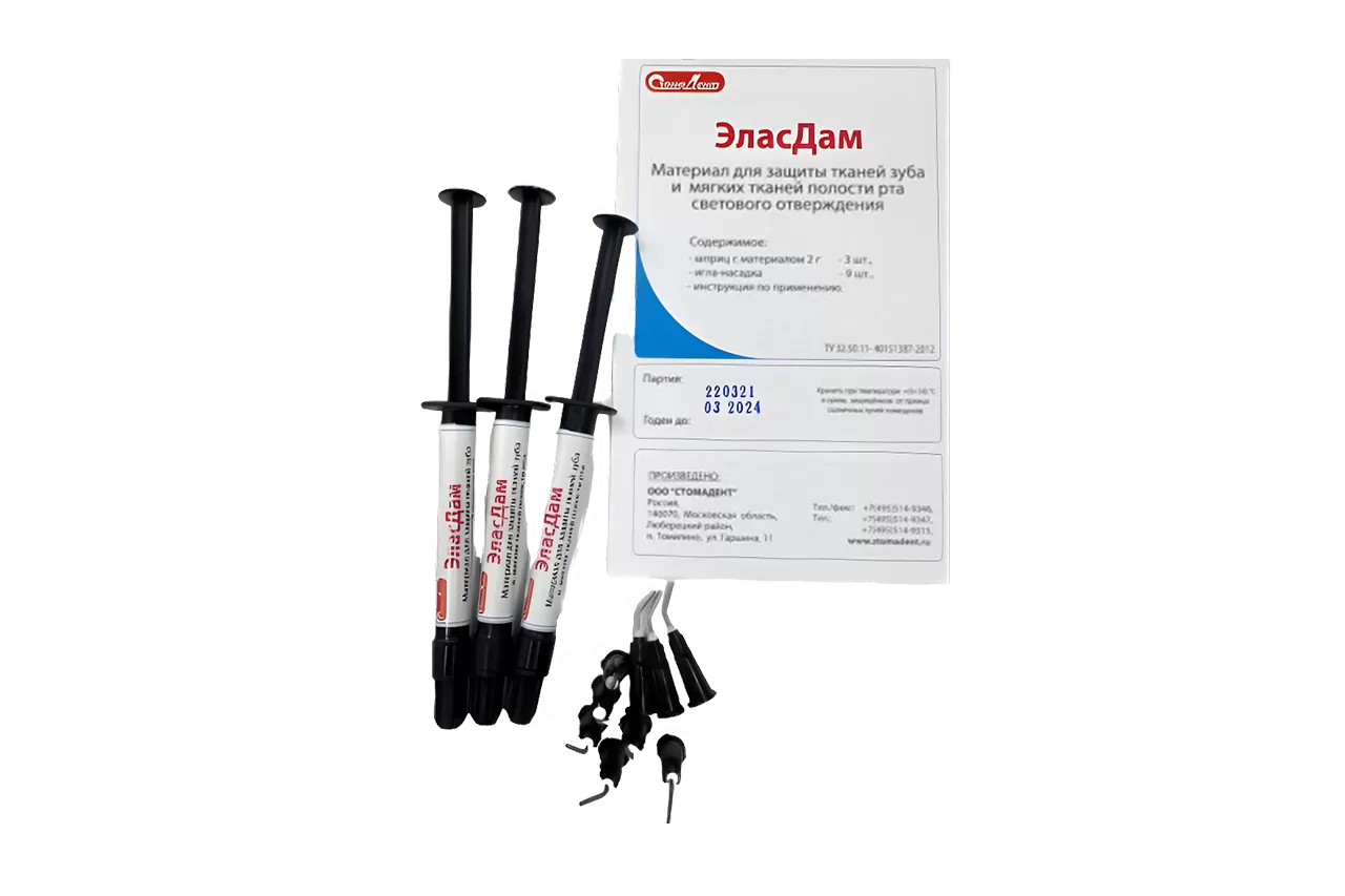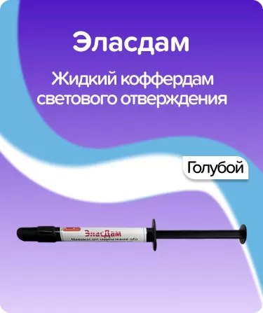 Эласдам голубой от Стомадент – это светополимеризующийся жидкий коффердам, обеспечивающий эффективную защиту тканей зуба и мягких тканей полости рта во время стоматологических процедур.