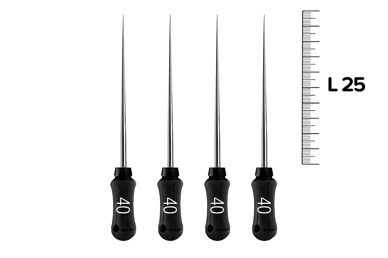 Finger spreader Maillefer N40 L25 ручной от Dentsply Sirona изготовлен из высококачественной стали с гладкими стенками и острым концом. Этот инструмент предназначен для латеральной конденсации гуттаперчи в корневом канале, что делает его незаменимым в эндодонтической практике. Спредер сочетает в себе надежность и удобство в использовании, что обеспечивает высокую эффективность работы стоматолога.