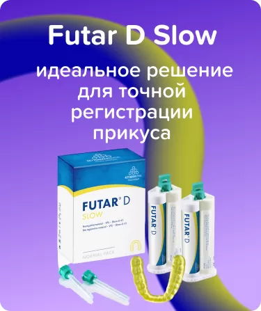 Futar D Slow для регистрации прикуса от Kettenbach - это эластомерный материал для регистрации прикуса, созданный на основе винилполисилоксана. Он выделяется своей выдающейся конечной твердостью и продолжительным рабочим временем, что делает его идеальным выбором для клинических и лабораторных задач.