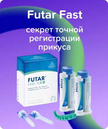 Futar Fast для регистрации прикуса от компании Kettenbach представляет собой эластомерные материалы, предназначенные для точной регистрации прикуса. Эти материалы основаны на винилполисилоксане и обладают высокой конечной твердостью, что обеспечивает надежность и точность в работе. Футар легко обрабатывается фрезой и обрезается скальпелем, что делает его простым в использовании. Кроме того, эластомер быстро отвердевает, что позволяет сократить время на выполнение процедур.