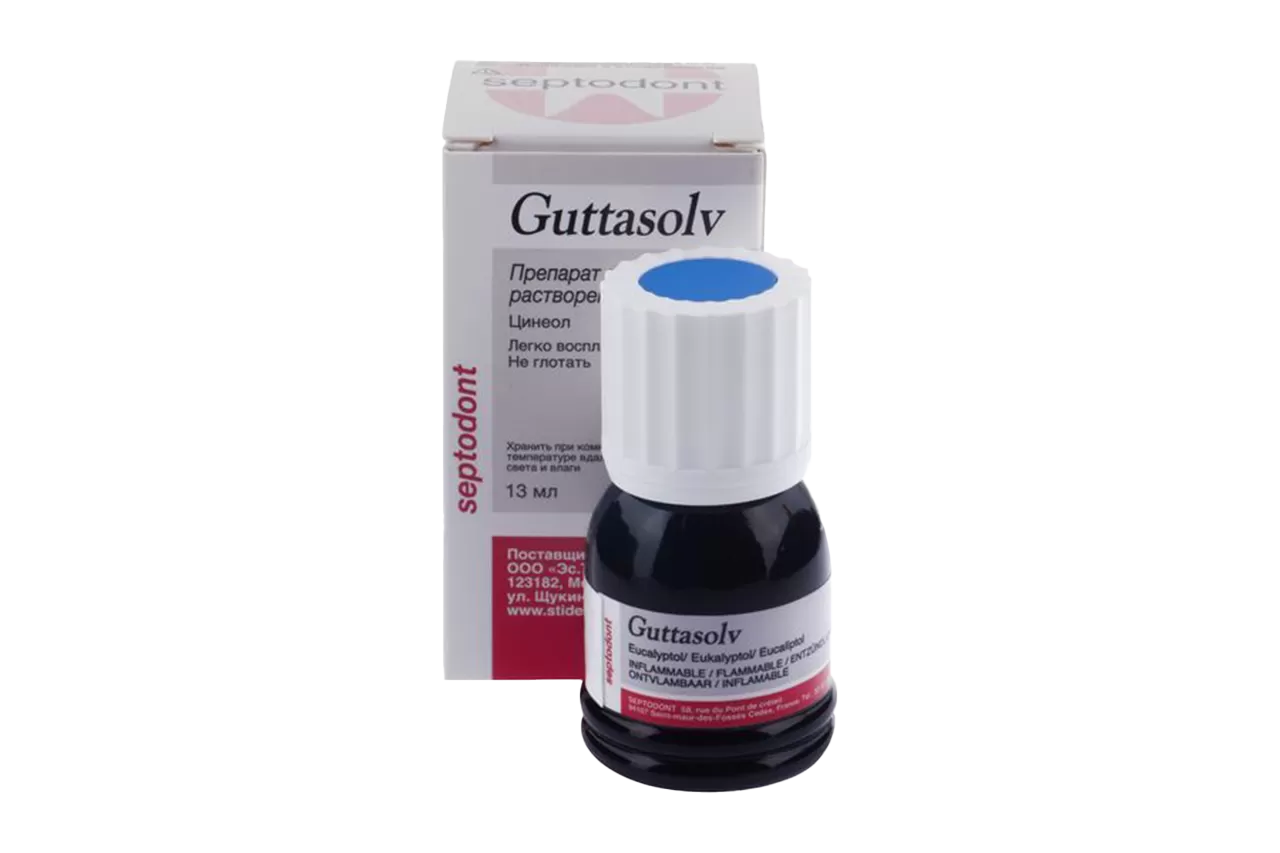 Guttasolv - растворитель для гуттаперчи, предназначенный для распломбировки каналов и повышения пластичности штифта во время пломбирования от Septodont