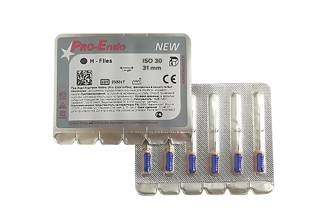 H-Files Pro-Endo N30 L31 ручные от VDW - это набор ручных эндодонтических файлов круглого сечения, предназначенных для обеспечения оптимального размера и формы корневого канала. Эти файлы идеально подходят для ирригации и пломбирования, а также для механической обработки, что позволяет выравнивать стенки канала с высокой точностью.
