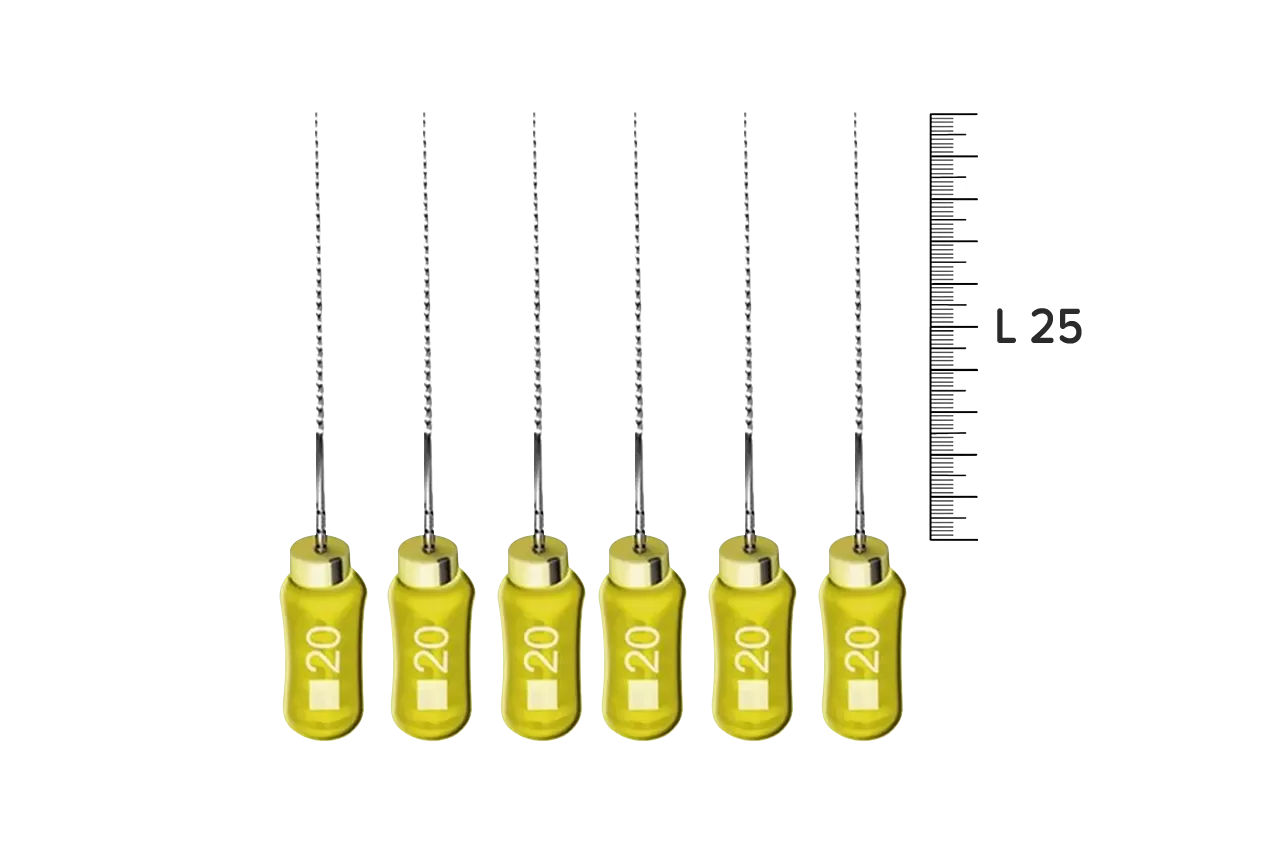 K-File Nitiflex N20 L25 ручные от производителя Dentsply Sirona - это высококачественный инструмент, предназначенный для срезания дентина при ретракции и выравнивания стенок корневого канала во время его расширения. Изготовленный из никель-титанового сплава, он обеспечивает дополнительную прочность и эластичность, что делает его идеальным выбором для стоматологических процедур.