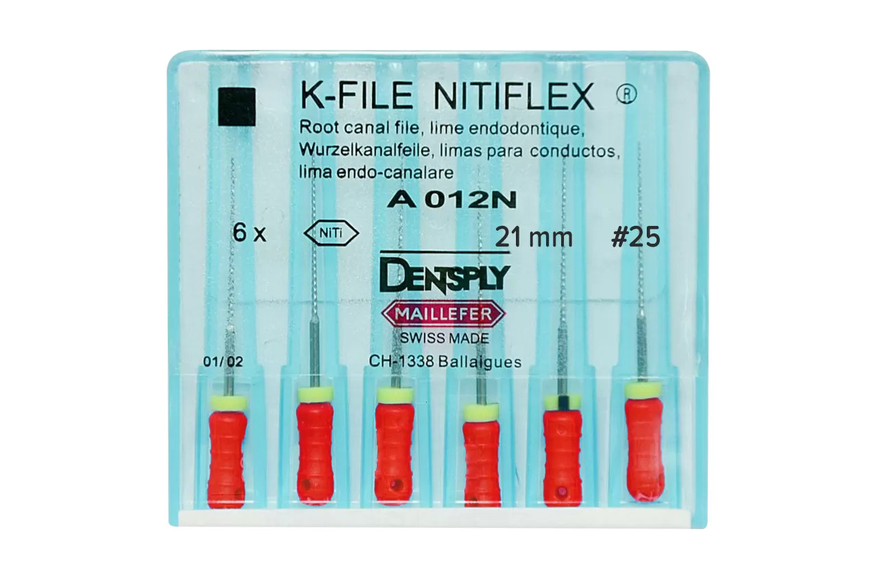 K-File Nitiflex N25 L21 ручные от производителя Dentsply Sirona - это высококачественный инструмент, предназначенный для срезания дентина при ретракции и выравнивания стенок корневого канала во время его расширения. Изготовленный из никель-титанового сплава, он обеспечивает дополнительную прочность и эластичность, что делает его идеальным выбором для стоматологических процедур.