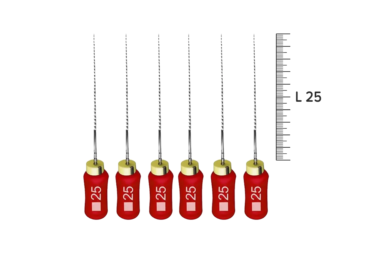 K-File Nitiflex N25 L25 ручные от производителя Dentsply Sirona - это высококачественный инструмент, предназначенный для срезания дентина при ретракции и выравнивания стенок корневого канала во время его расширения. Изготовленный из никель-титанового сплава, он обеспечивает дополнительную прочность и эластичность, что делает его идеальным выбором для стоматологических процедур.