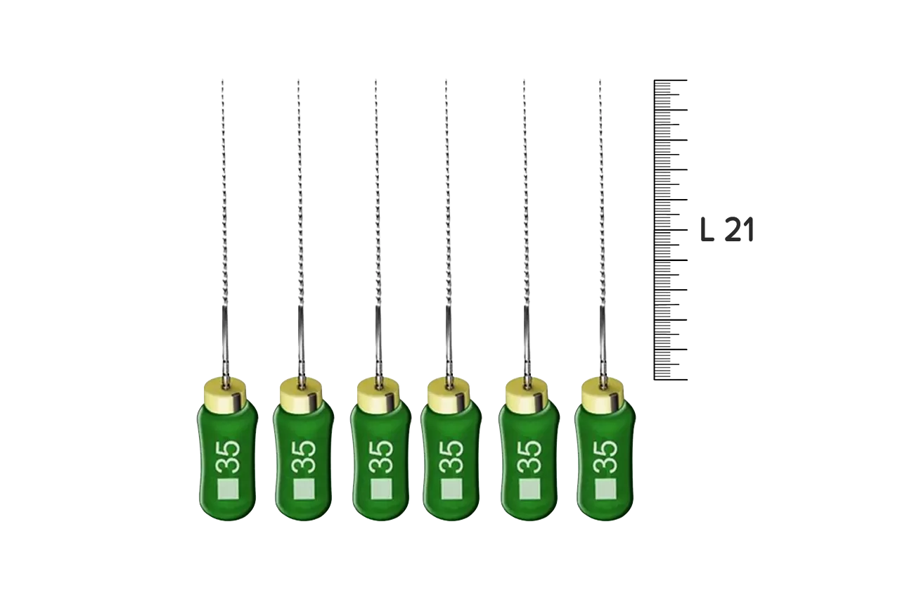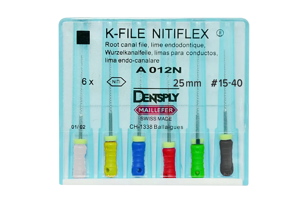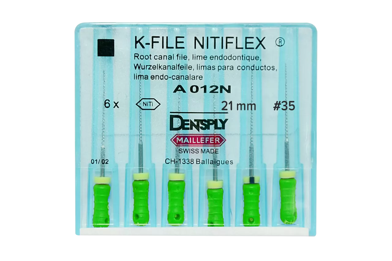 K-File Nitiflex N35 L21 ручные от производителя Dentsply Sirona - это высококачественный инструмент, предназначенный для срезания дентина при ретракции и выравнивания стенок корневого канала во время его расширения. Изготовленный из никель-титанового сплава, он обеспечивает дополнительную прочность и эластичность, что делает его идеальным выбором для стоматологических процедур.