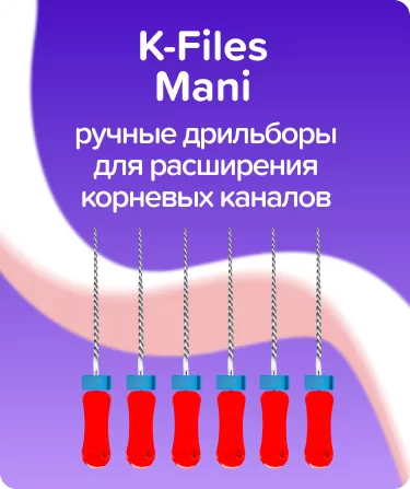 K-Files Mani N25 L25 ручные от Mani используются в стоматологии для подготовки корневых каналов перед проведением сложных реставрационных процедур, включая работу с сильно искривленными каналами. Эти ручные эндодонтические инструменты с режущей функцией имеют спиралевидную нарезку на рабочей части и изготовлены из нержавеющей стали. Рукоятки сделаны из пластика (полибутилентерефталата).