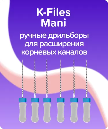 K-Files Mani N45 L25 ручные от Mani используются в стоматологии для подготовки корневых каналов перед проведением сложных реставрационных процедур, включая работу с сильно искривленными каналами. Эти ручные эндодонтические инструменты с режущей функцией имеют спиралевидную нарезку на рабочей части и изготовлены из нержавеющей стали. Рукоятки сделаны из пластика (полибутилентерефталата).