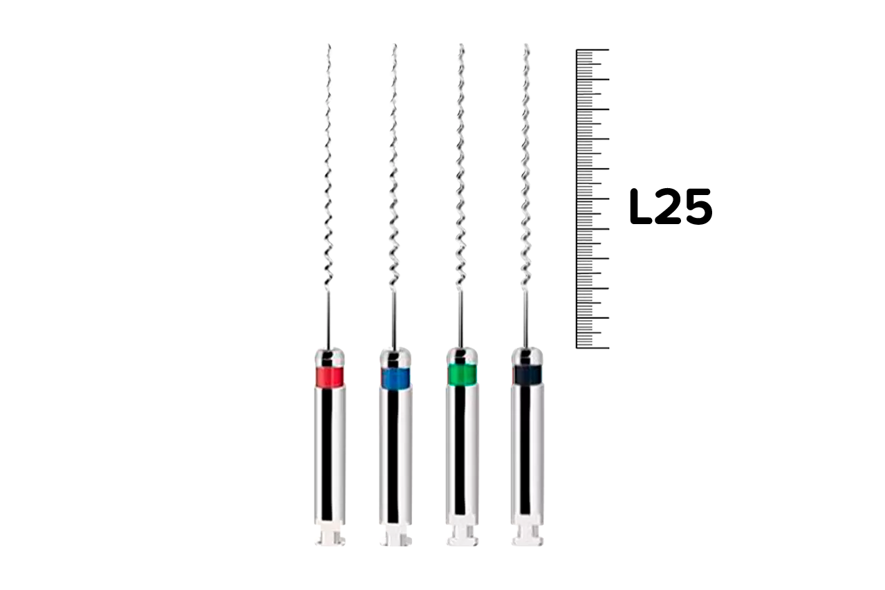 Lentulo N001-004 L25 машинные от Dentsply Sirona - это инструмент с тонкой спиральной формой, предназначенный для заполнения корневых каналов пломбировочной пастой в ходе эндодонтических процедур. Он обеспечивает равномерное распределение материала по всей длине корневого канала.