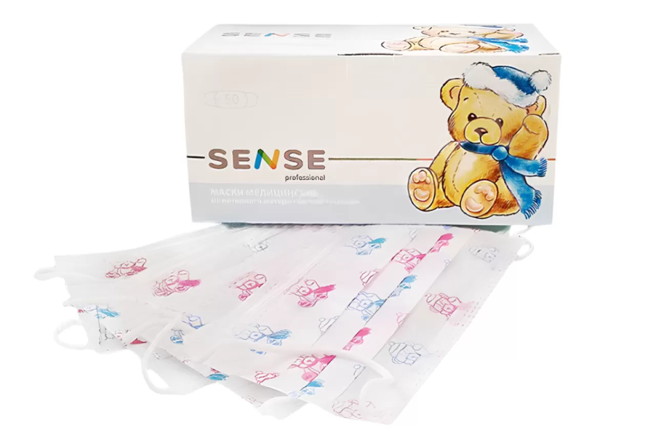 Маски Sense Premium Детский рисунок Мишки от компании Sense - ключевая особенность этих масок заключается во внутреннем слое, выполненном из инновационного нетканого материала - термобонда. Этот материал обладает низким ворсоотделением и отвечает самым высоким требованиям по комфорту и уровню защиты.