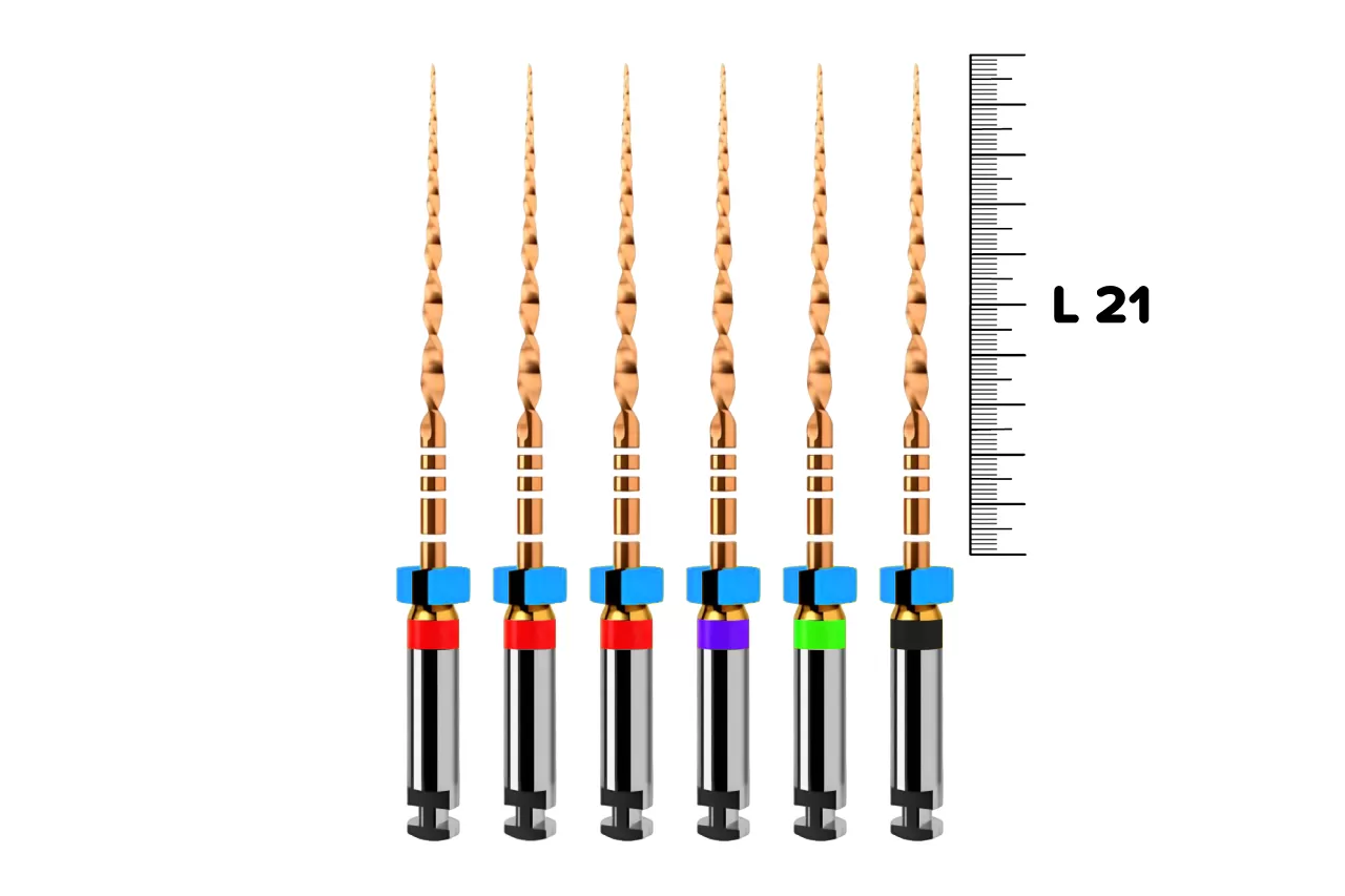 Multitaper Files Gold N25-40 L21 WP16 от производителя Еврофайл - система никель-титановых вращающихся файлов для любого клинического случая, подходящих для обработки всех видов корневых каналов и работающих на полную рабочую длину канала.