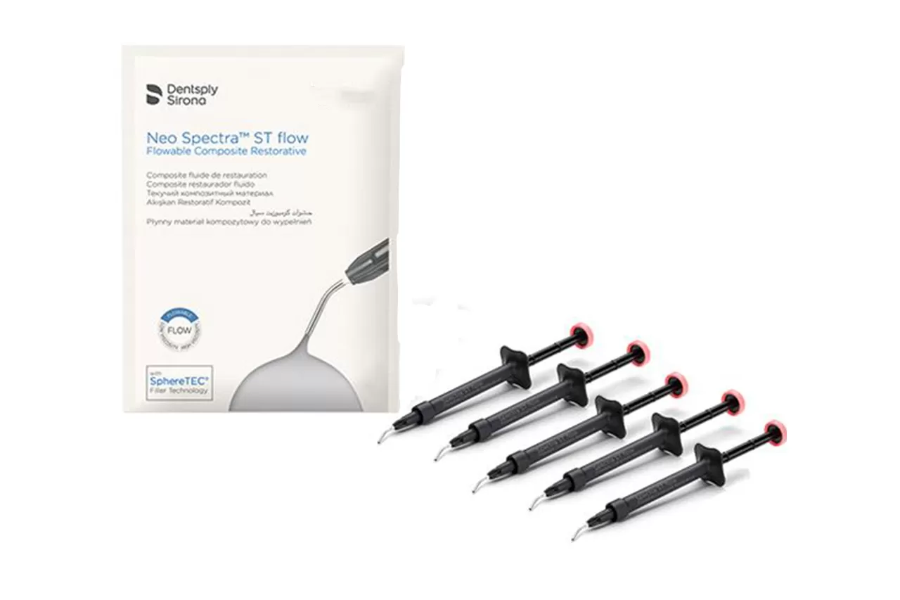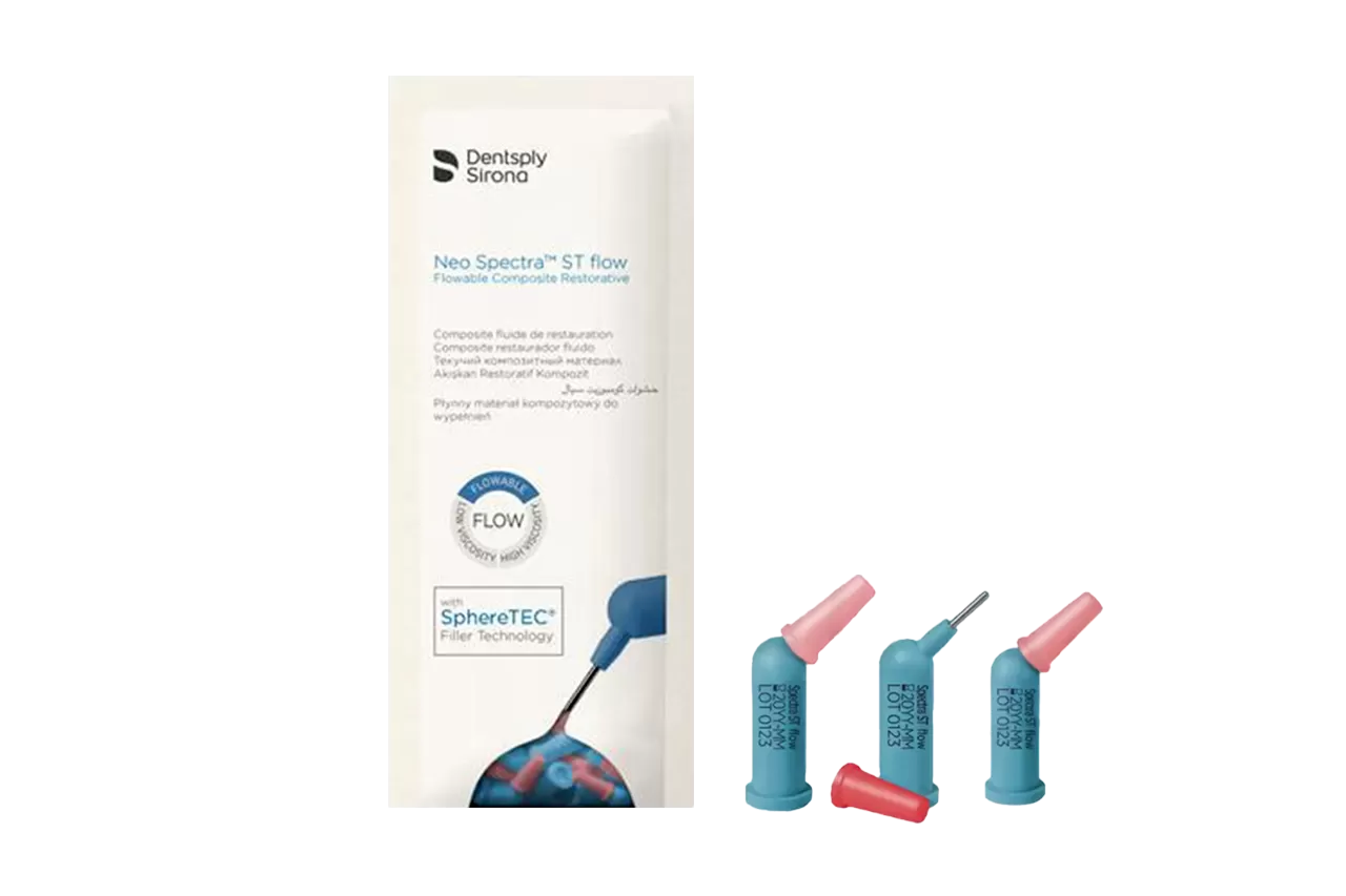 Neo Spectra ST Flow E1 от производителя Dentsply Sirona - светоотверждаемый рентгеноконтрастный композитный материал, идеально подходящий для реставраций как фронтальных, так и боковых зубов. Благодаря высокой текучести, он адаптируется к геометрии полости без использования ручных инструментов.