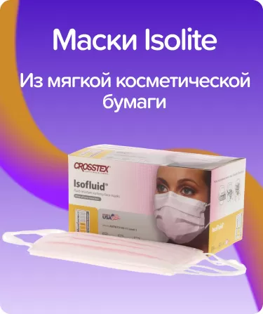 Одноразовые маски Isolite, розовые Crosstex созданы специально для нежной кожи компанией Crosstex. Их конструкция состоит из влагоустойчивого внешнего слоя, мягкого внутреннего слоя из косметической бумаги и ушных петель, лишенных латекса.