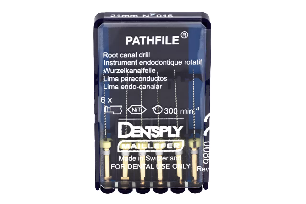 PathFile N16 L25 машинные от компании Dentsply Sirona - инновационная никель-титановая система, разработанная специально для быстрого и безопасного создания "ковровой дорожки" в корне зуба.