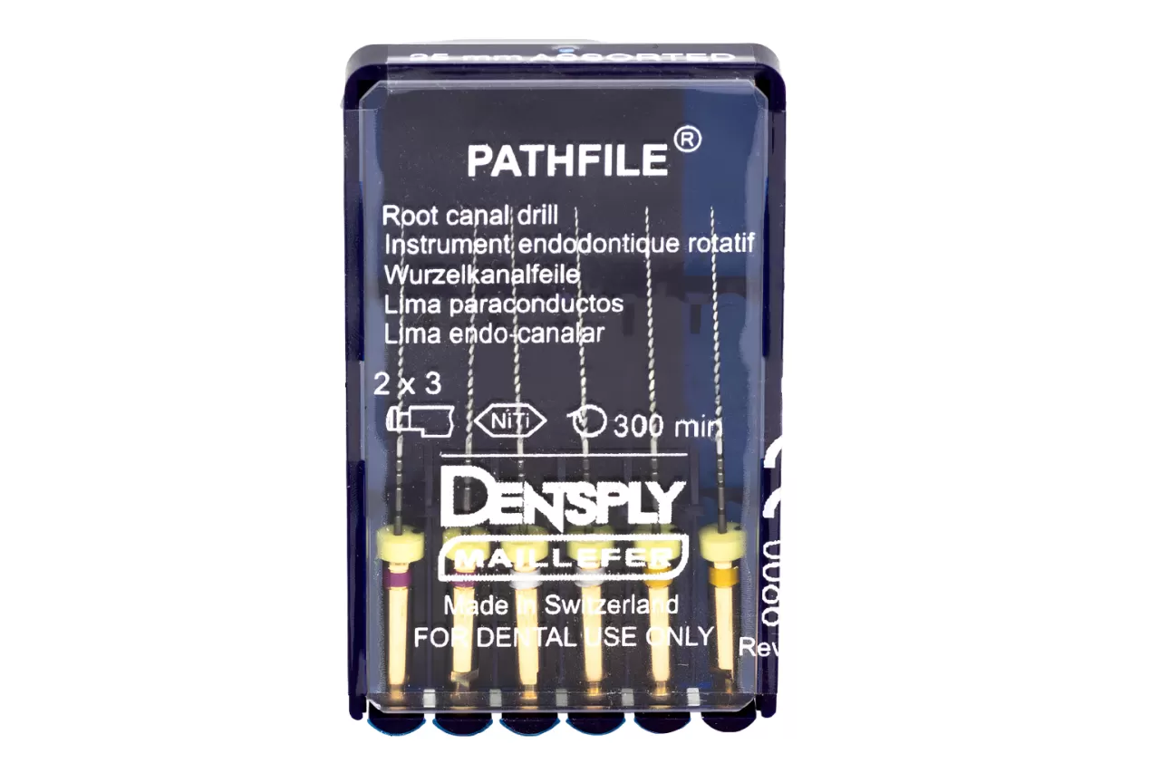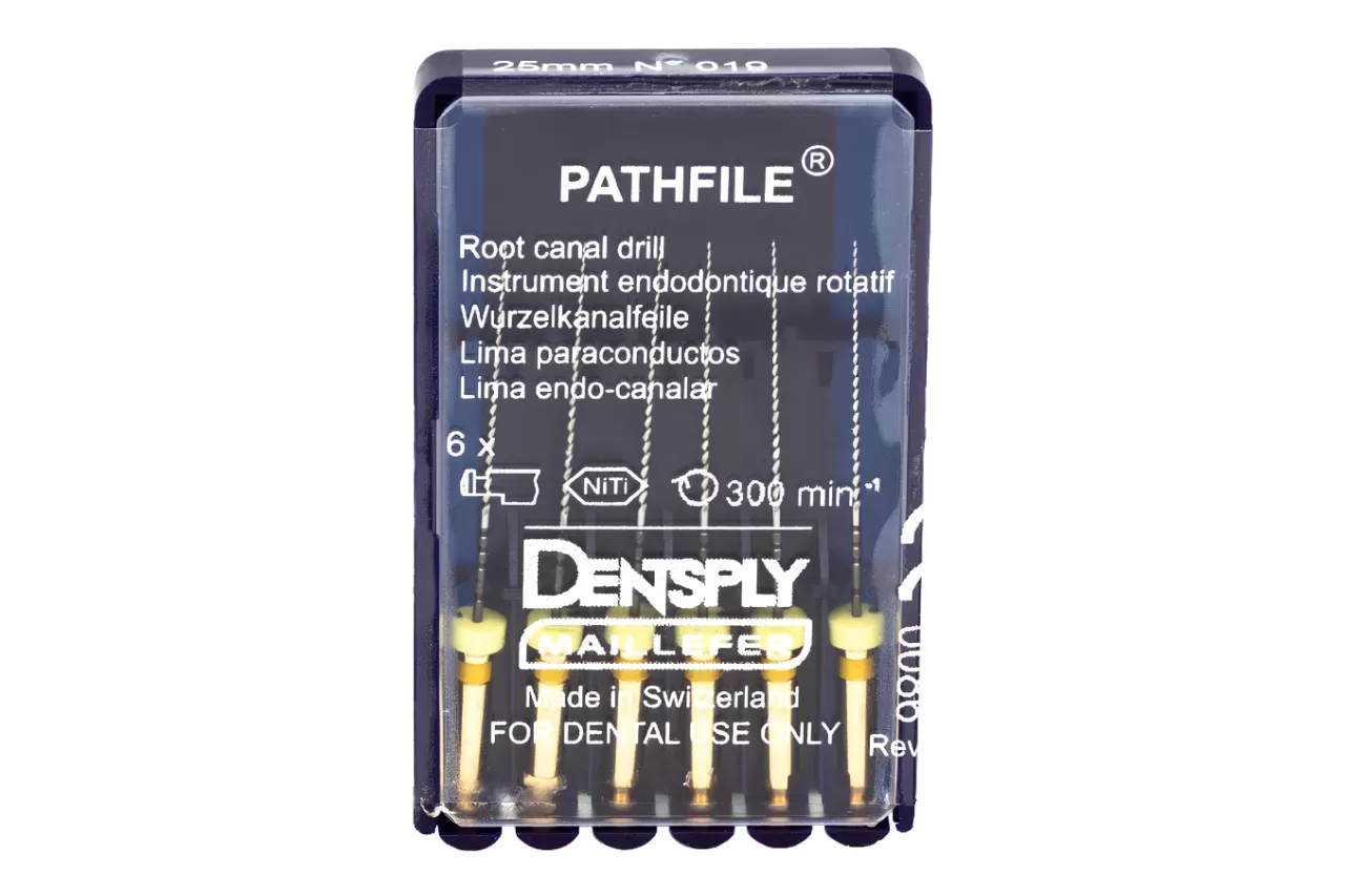 PathFile N19 L25 машинные от компании Dentsply Sirona - инновационная никель-титановая система, разработанная специально для быстрого и безопасного создания "ковровой дорожки" в корне зуба.
