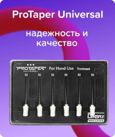 ProTaper Univ. ручные S2/21мм от компании Dentsply Sirona - набор надежных инструментов для эффективной обработки корневых каналов. Представлены в различных размерах и типах, чтобы удовлетворить все потребности стоматологов.