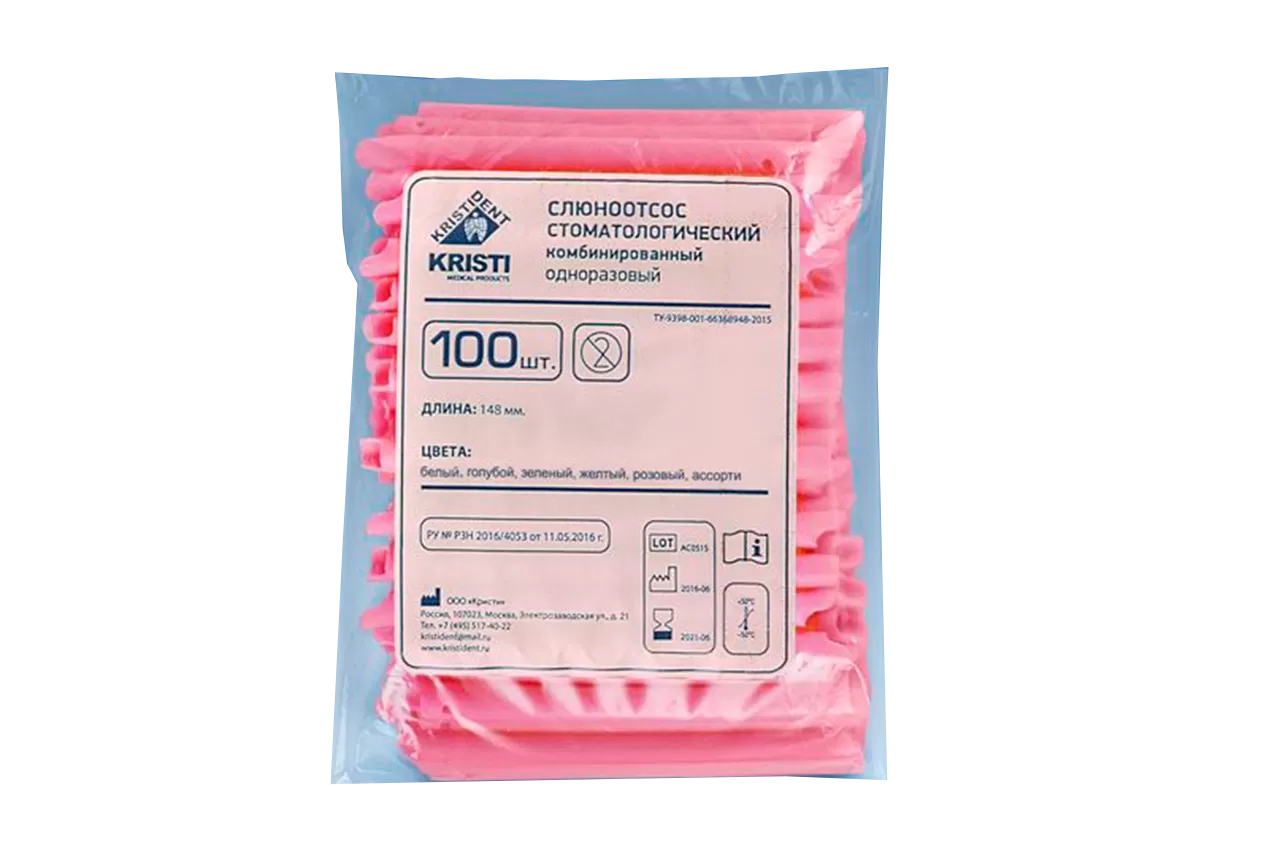 Пылесосы одноразовые Кристидент / розовые от производителя Кристидент - аспирационные инструменты для всасывания аэрозолей, твердых частиц и жидкостей из ротовой полости пациента во время стоматологических процедур. Комбинированные наконечники обеспечивают комфорт пациента и безопасность врача благодаря гладким, закругленным краям, которые предотвращают травмирование слизистой оболочки.