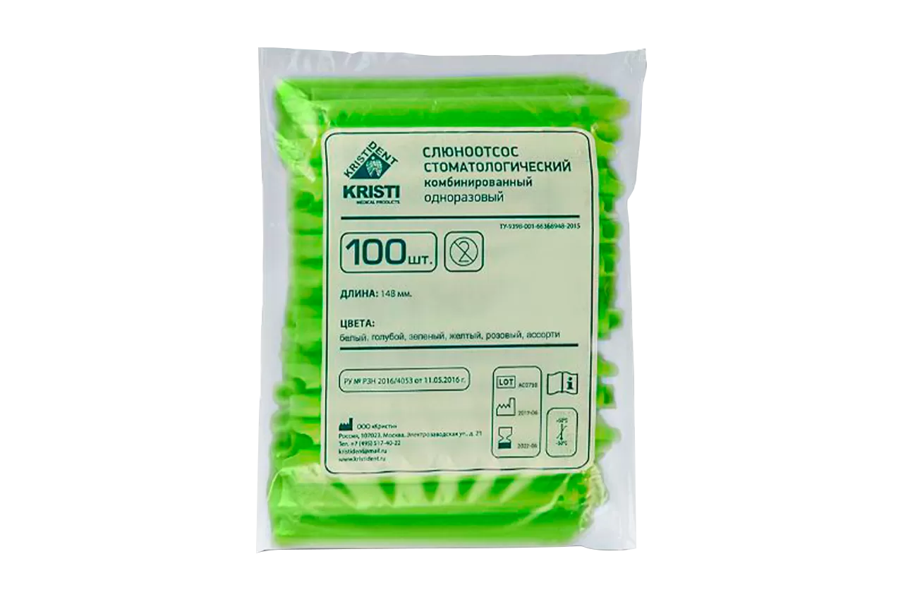 Пылесосы одноразовые Кристидент / зеленые от производителя Кристидент - аспирационные инструменты для всасывания аэрозолей, твердых частиц и жидкостей из ротовой полости пациента во время стоматологических процедур. Комбинированные наконечники обеспечивают комфорт пациента и безопасность врача благодаря гладким, закругленным краям, которые предотвращают травмирование слизистой оболочки.
