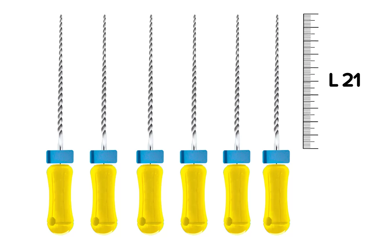 Reamers Pro-Endo N20 L21 ручной от немецкой компании VDW - ручные эндодонтические инструменты, предназначенные для лечения осложненного кариеса. Они обеспечивают оптимальные размер и форму корневого канала, необходимые для ирригации и последующего пломбирования. Также они выполняют механическую обработку корневого канала, обеспечивая прохождение его на рабочую длину пилящими и вращательно-режущими движениями.