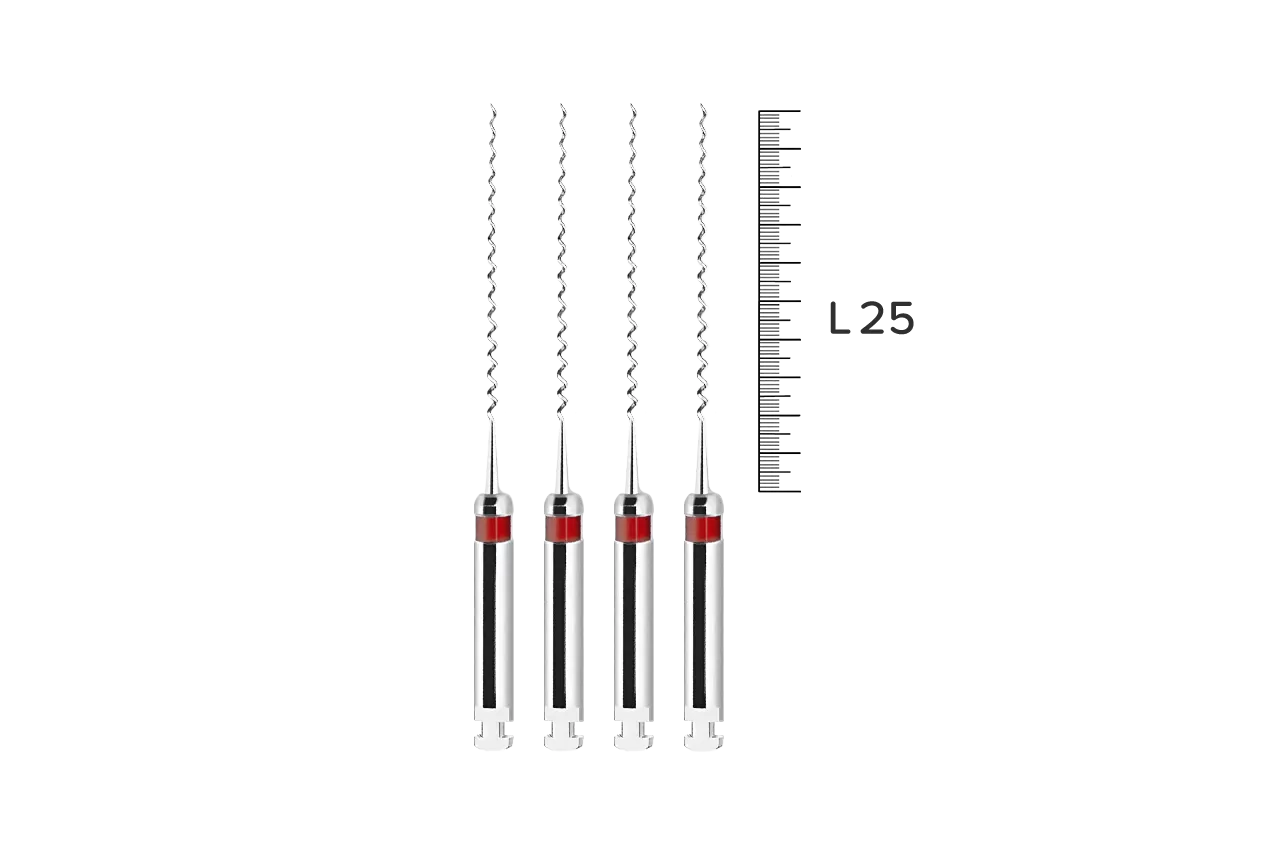 Каналонаполнитель обладает уникальными свойствами, благодаря хвостовику, который надежно фиксируется в угловом наконечнике, и конусообразной проволочной спирали, намотанной против часовой стрелки. При работе с инструментом паста, цемент или силлер эффективно перемещаются по каналу, минимизируя риск образования воздушных пузырей.