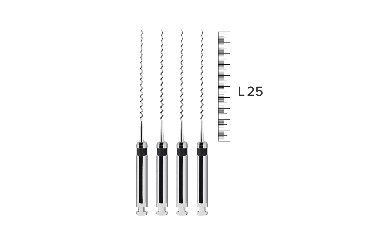 Каналонаполнитель обладает уникальными свойствами, благодаря хвостовику, который надежно фиксируется в угловом наконечнике, и конусообразной проволочной спирали, намотанной против часовой стрелки. При работе с инструментом паста, цемент или силлер эффективно перемещаются по каналу, минимизируя риск образования воздушных пузырей.