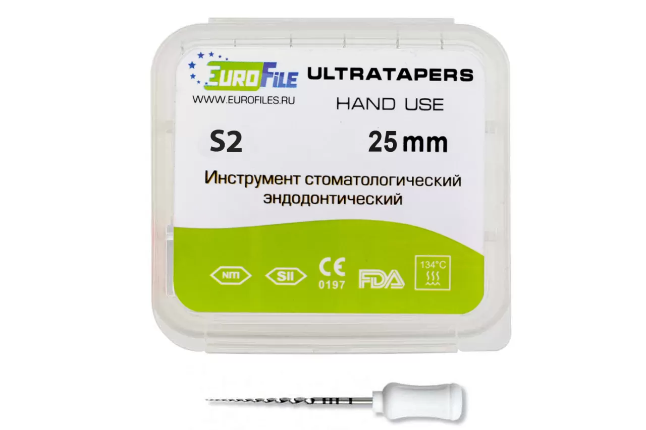 Ручные файлы 25мм S2 от Еврофайл - это высококачественный инструмент, предназначенный для эффективного препарирования корневых каналов. Изготовленные из прочного и гибкого никель-титанового сплава, эти файлы обеспечивают исключальную надежность и долговечность. Треугольное поперечное сечение и постепенно меняющаяся конусность по рабочей длине делают их идеальными для работы с каналами любой сложности. Кончик файлов имеет закругленную форму, что гарантирует безопасность и минимизирует риск повреждения тканей.