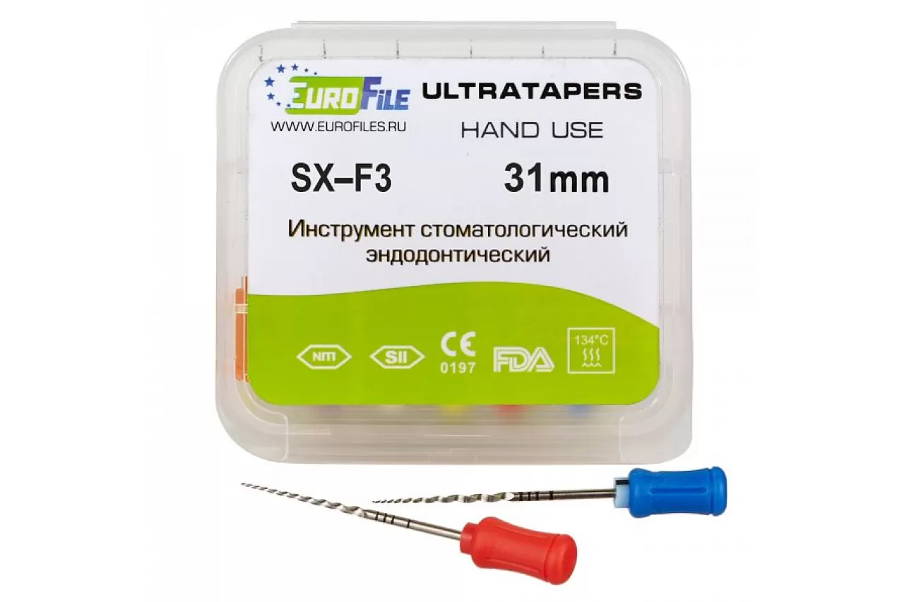 Ручные файлы 31мм F2 от Еврофайл - это высококачественный инструмент, предназначенный для эффективного препарирования корневых каналов. Изготовленные из прочного и гибкого никель-титанового сплава, эти файлы обеспечивают исключальную надежность и долговечность. Треугольное поперечное сечение и постепенно меняющаяся конусность по рабочей длине делают их идеальными для работы с каналами любой сложности. Кончик файлов имеет закругленную форму, что гарантирует безопасность и минимизирует риск повреждения тканей.
