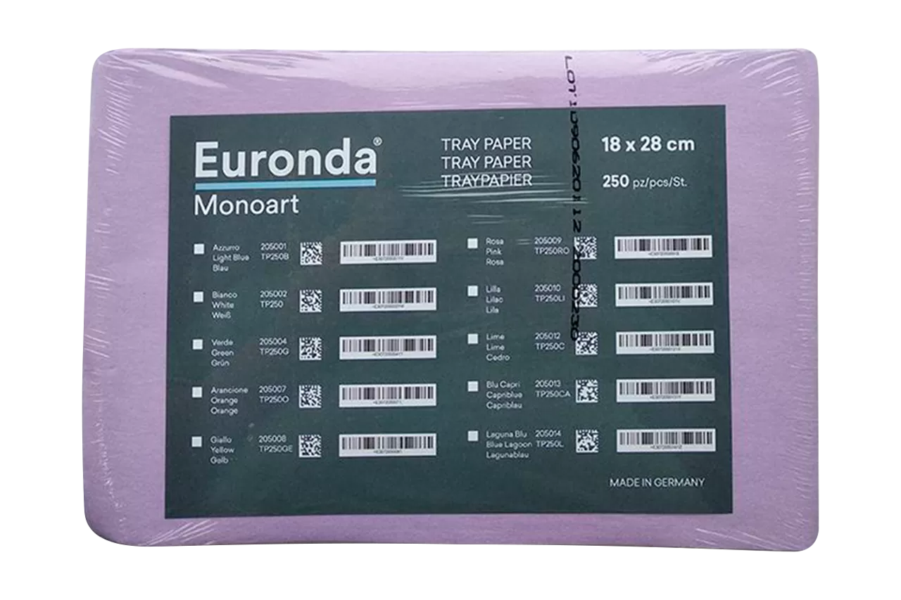 Салфетки для подносов автоклавируемые 18х28 см / лиловые от Euronda - специализированные покрытия из гофрированной бумаги, предназначенные для использования в автоклавах. Они предотвращают окисление и появление ржавчины на инструментах, а также эффективно удаляют остаточную влагу при стерилизации неупакованных изделий, что обеспечивает безопасность и долговечность инструментария.