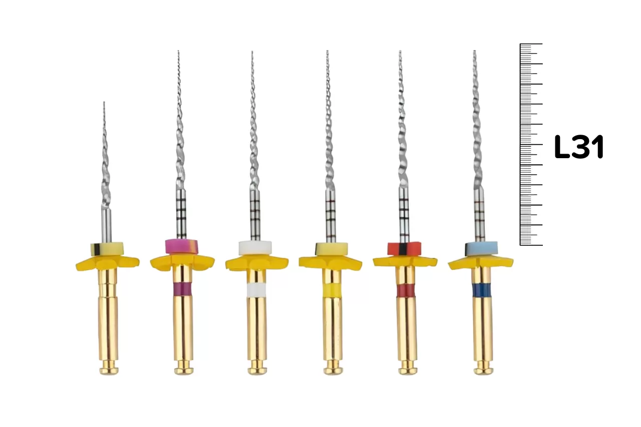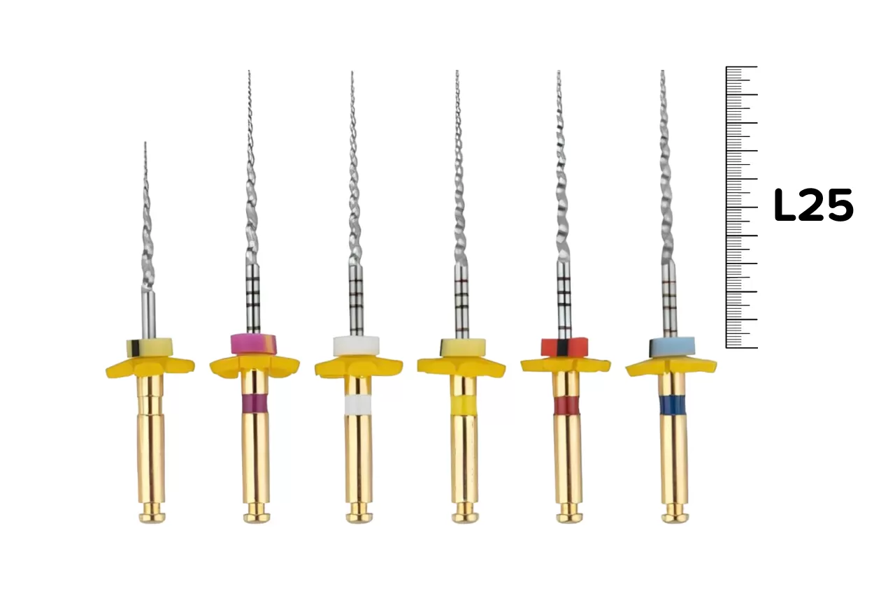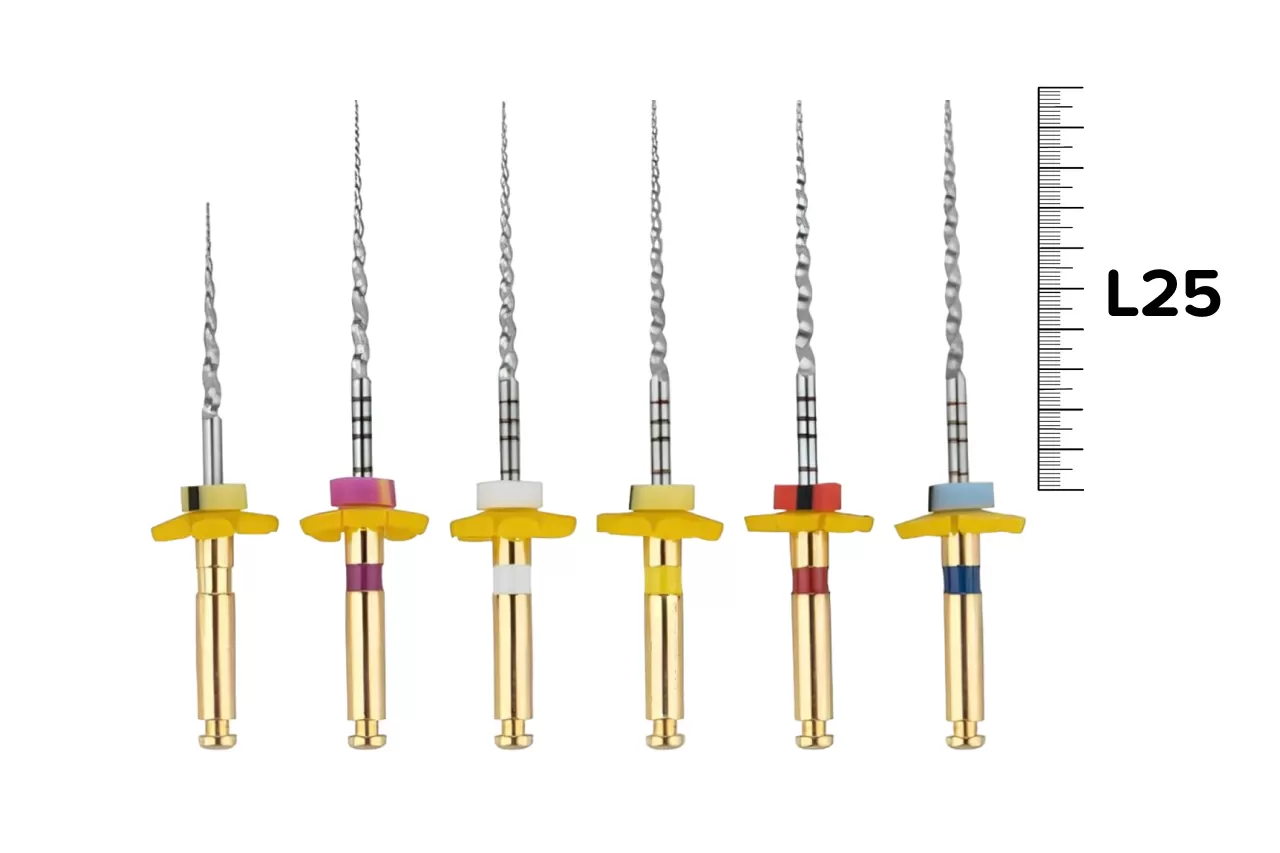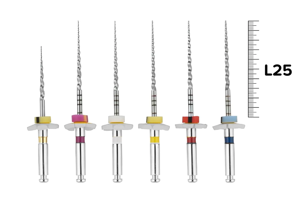SC pro машинные с памятью 06-25 L21 от производителя Soco - инструменты, разработанные для эффективной обработки и расширения каналов. Уникальное специальное покрытие обеспечивает высокую долговечность, а дополнительная термообработка делает их более мягкими и приятными в использовании, чем аналогичные продукты из никель-титанового сплава.