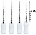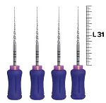 Ручные файлы от компании Еврофайл - инструменты для препарирования корневых каналов, изготовленные из никель-титанового сплава, что обеспечивает их прочность и гибкость. Файлы имеют треугольное поперечное сечение и постепенно меняющуюся конусность, что обеспечивает эффективное расширение каналов любой сложности. Неагрессивный закругленный кончик и изменяющийся угол спирали предотвращают заклинивание и обеспечивают безопасное продвижение по каналу. Эти файлы идеально подходят для работы в труднодоступных и изогнутых каналах, предоставляя стоматологам точный тактильный контроль и высокую эффективность обработки.