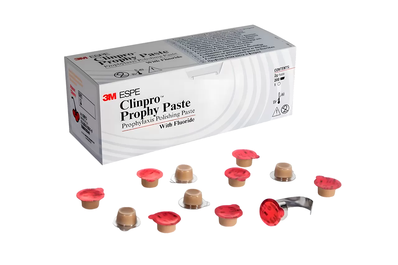 Пасты от 3M Espe - эффективные абразивные пасты для профессиональной чистки и полировки зубов, содержащие вулканическую породу (пемзу). Они удаляют налет и окрашивания, улучшая гигиену полости рта. Пасты доступна в трех степенях зернистости для оптимального выбора в зависимости от дисколорита и клинической ситуации. В процессе чистки выделяется фтор, укрепляющий зубы и снижая чувствительность, а также минимизируется разбрызгивание. Вкусы мяты и вишни делают процедуру приятной для пациента.