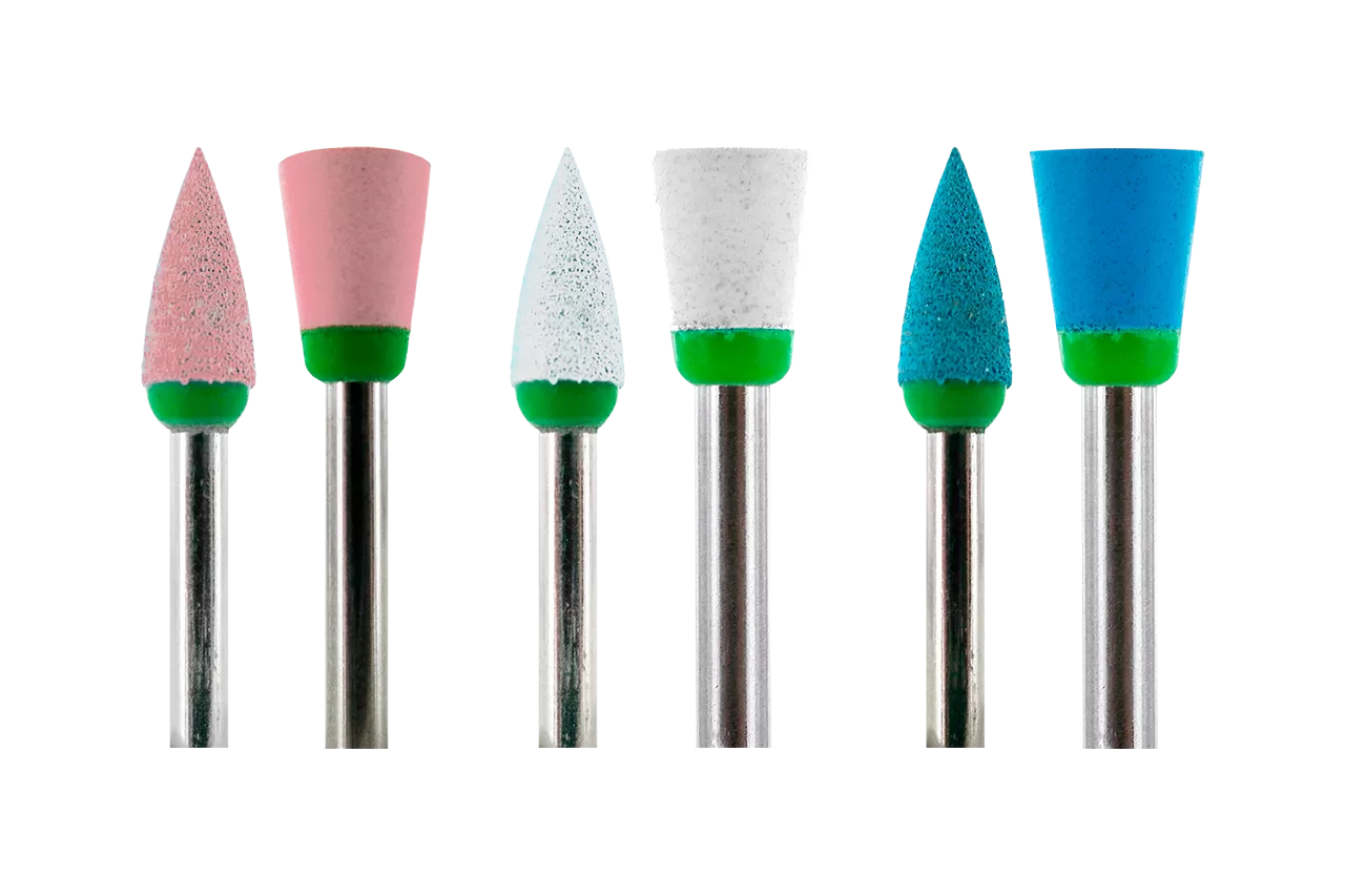 Полиры для керамики от Jota - высокоэффективные алмазные инструменты, предназначенные для трехэтапной обработки керамических реставраций. Они доступны в различных формах, обеспечивая доступ к труднодоступным участкам и высокую точность полировки. Этапы полировки включают: G (предварительная подготовка) для начального сглаживания, M (полировка) для улучшения гладкости и устранения дефектов, и F (финишная полировка) для придания керамике окончательного блеска и гладкости.