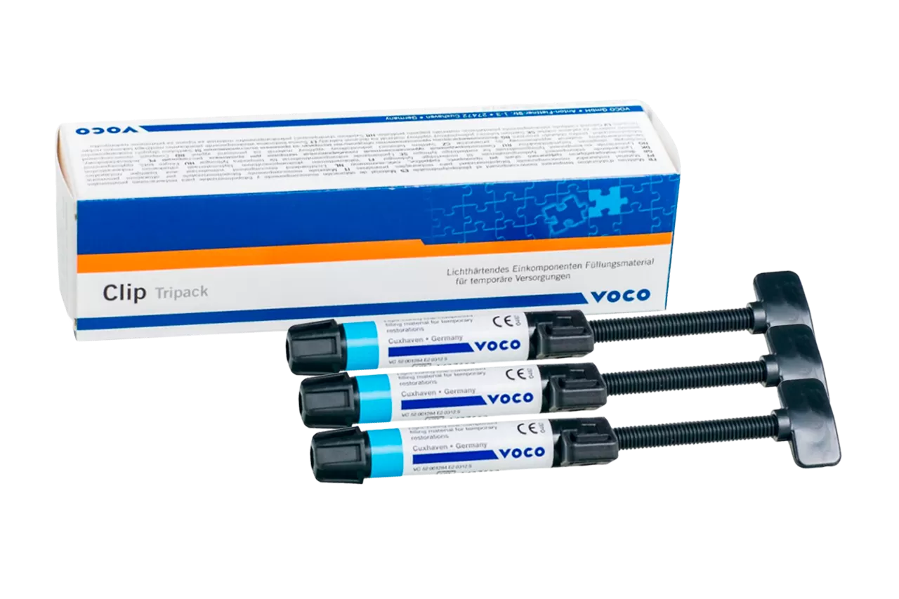 Временные пломбы Voco Clip от компании Voco - это современные решения для временных реставраций, сочетая легкость использования и высокое качество результата. Эти светоотверждаемые материалы обладают оптимальной эластичностью, что позволяет легко извлекать их из полости без повреждения краев, обеспечивая надежное прилегание и сохранение границ препарирования. Voco Clip идеально подходит для создания временных пломб и защиты полостей при изготовлении вкладок и накладок, что делает его универсальным инструментом в стоматологической практике. Быстрая фотополимеризация и устойчивость к жевательной нагрузке позволяют экономить время и усилия врача, обеспечивая при этом профессиональные результаты и комфорт для пациента.