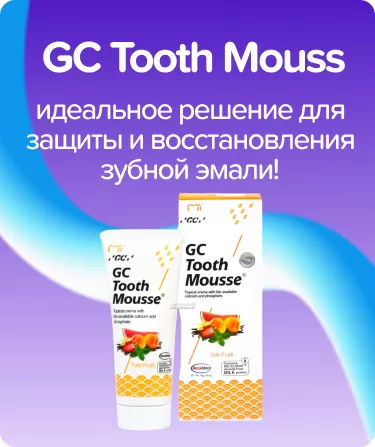 Tooth Mousse от поизводителя GC - это реминерализирующий, водорастворимый стоматологический крем без сахара, содержащий уникальный компонент Recaldent CPP-ACP (Казеин Фосфопептид - Аморфный Кальций Фосфат). Этот продукт предназначен для восстановления минерального баланса в полости рта, реминерализации зубной эмали и снижения чувствительности зубных тканей.