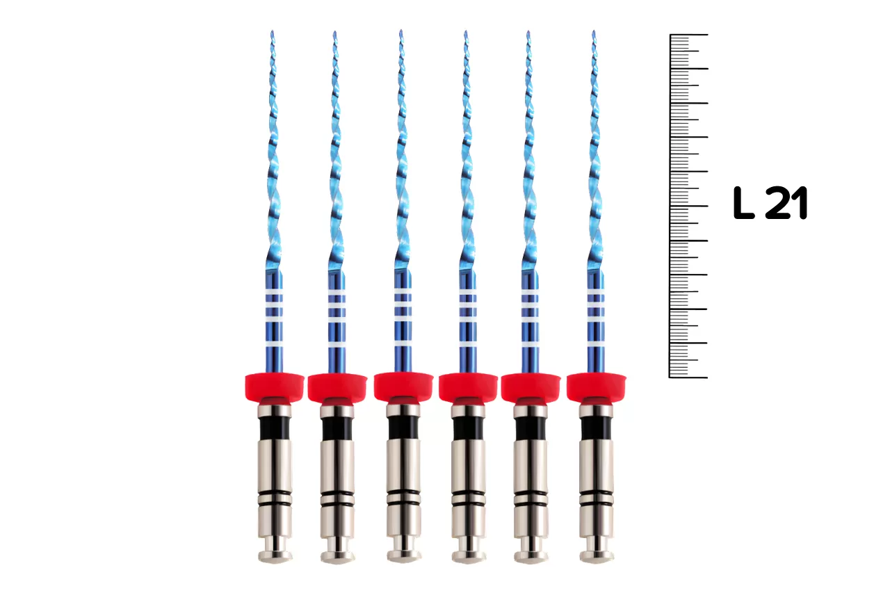 UltraFiles Blue N40 .02 L21 машинные - никель-титановые машинные файлы, от производителя Еврофайл - инновационное решение для эффективной обработки корневых каналов. При производстве используется технология Heat Activation. Его переменная поверхность соприкосновения и уникальный нережущий закругленный кончик обеспечивают безупречную очистку и максимальную безопасность при работе.
