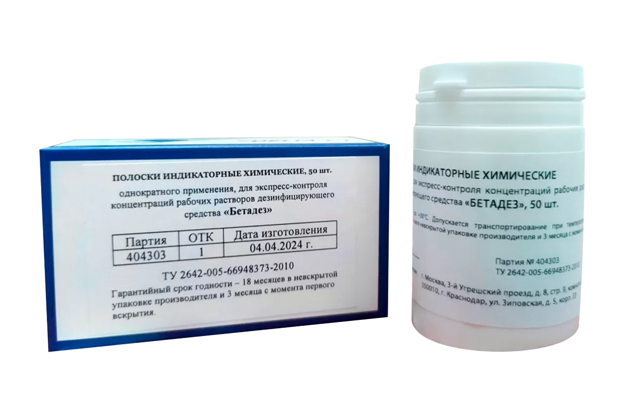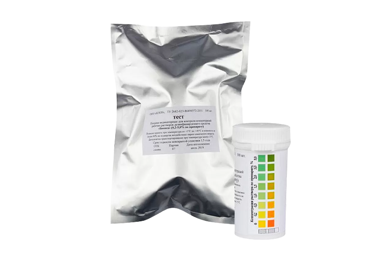 Тест-Венделин от производителя Bozon - индикаторные полоски для оперативного контроля концентрации рабочих растворов дезинфицирующего средства Венделин в диапазоне от 0,05% до 5,0%.