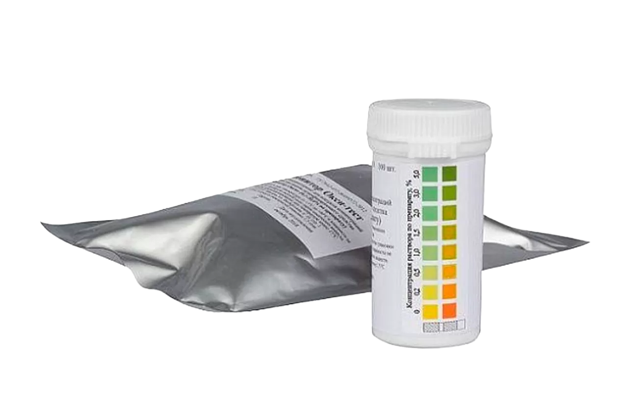 Полоски изготовлены из специального индикаторного материала с цветовой шкалой для определения концентраций раствора.